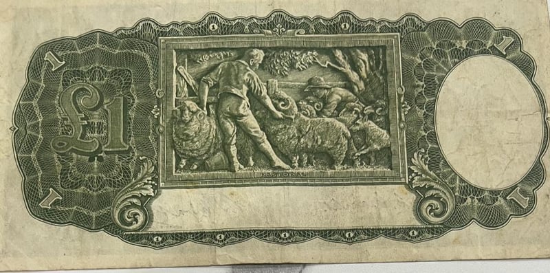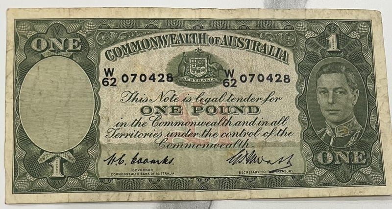 1949 COMMONWEALTH OF AUSTRALIA ONE POUND NOTE WATT/COOMBS SERIAL NO 070428…SCARCE..