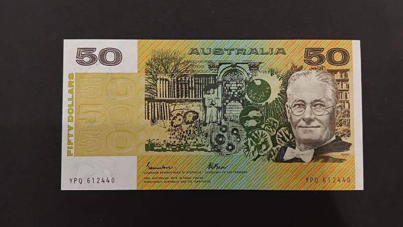 1985 50 DOLLAR AUSTRALIAN NOTES JOHNSTON FRAZER AUNC 1985 50 Dollar Australian Notes Johnston Frazer Aunc 23528+4