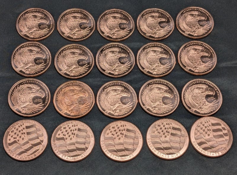 COLLECTION OF TWENTY GOLDEN STATE MINT COPPER COINSOne Ounce .999 Fine Copper, Includes Protective CaseCondition: Mint585028+6