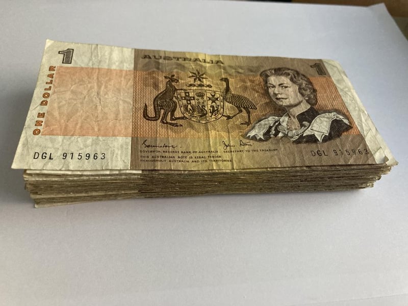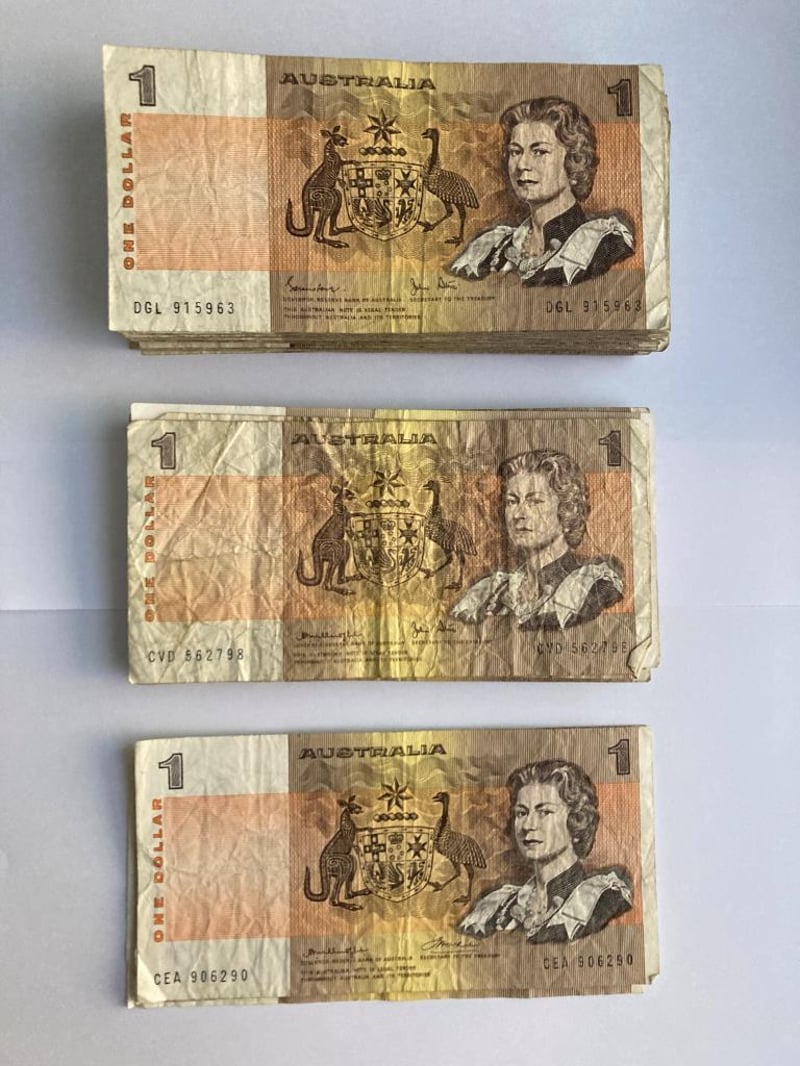 BULK LOT OF 100 X LOW GRADE AUSTRALIAN $1 NOTES, 4 X KNIGHT/WHEELER, 29 X KNIGHT/STONE, 67 X JOHNSTON STONE