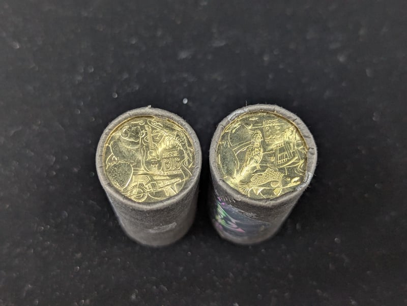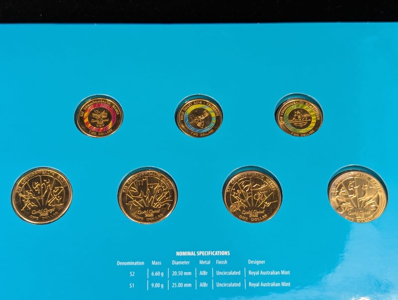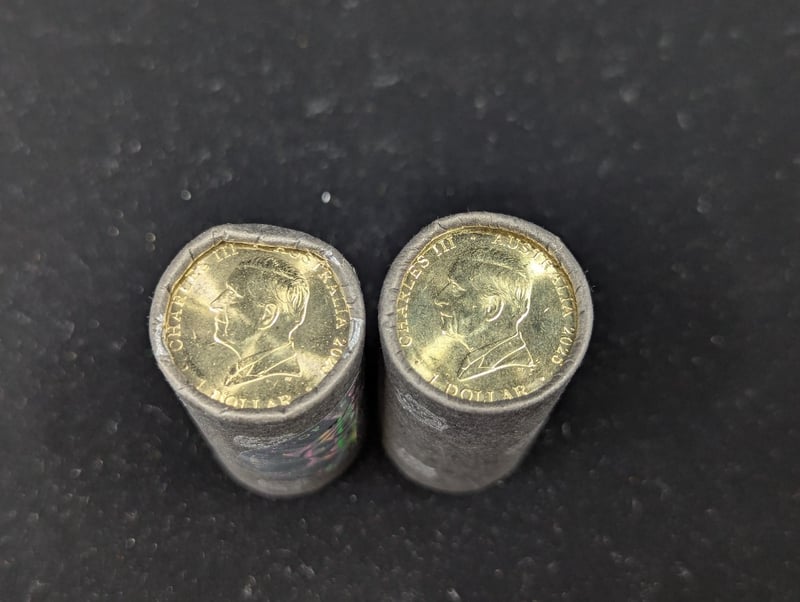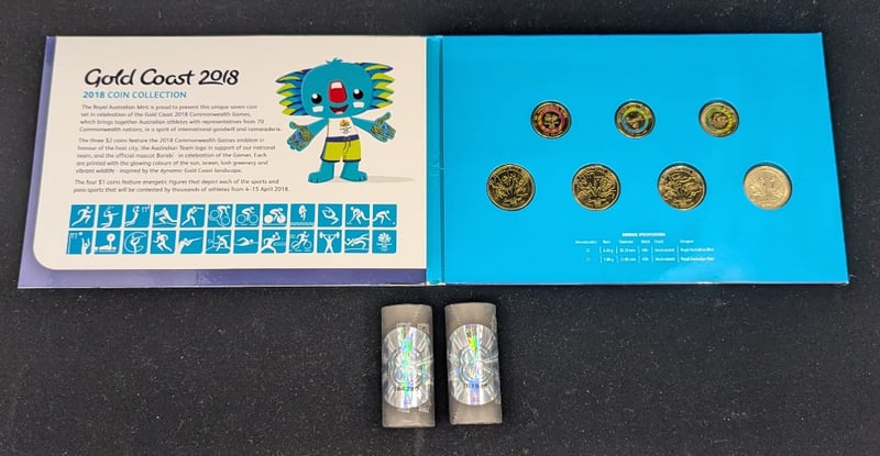 TWO 2025 AUSSIE BIG THINGS ONE DOLLAR COIN ROLLS AND 2018 GOLD COAST COMMONWEALTH GAMES COIN COLLECTION IN FOLDER