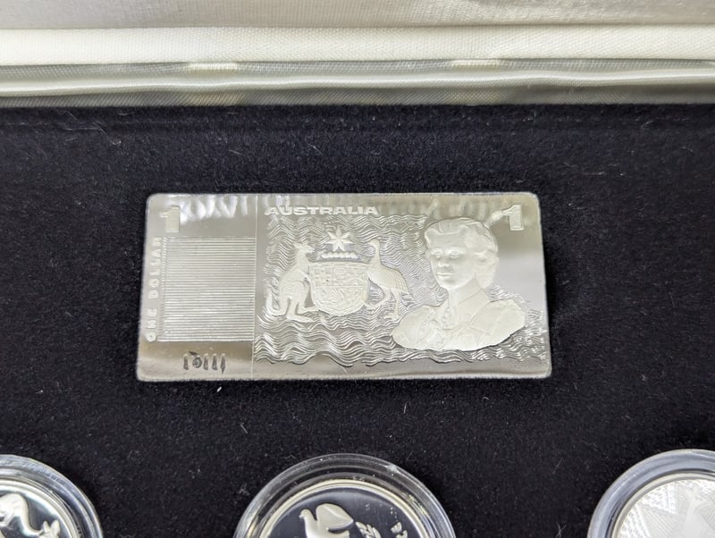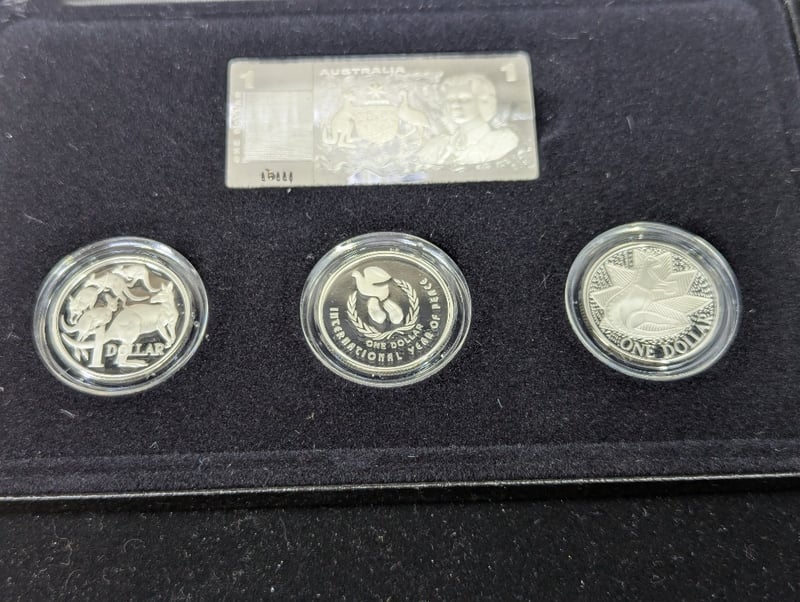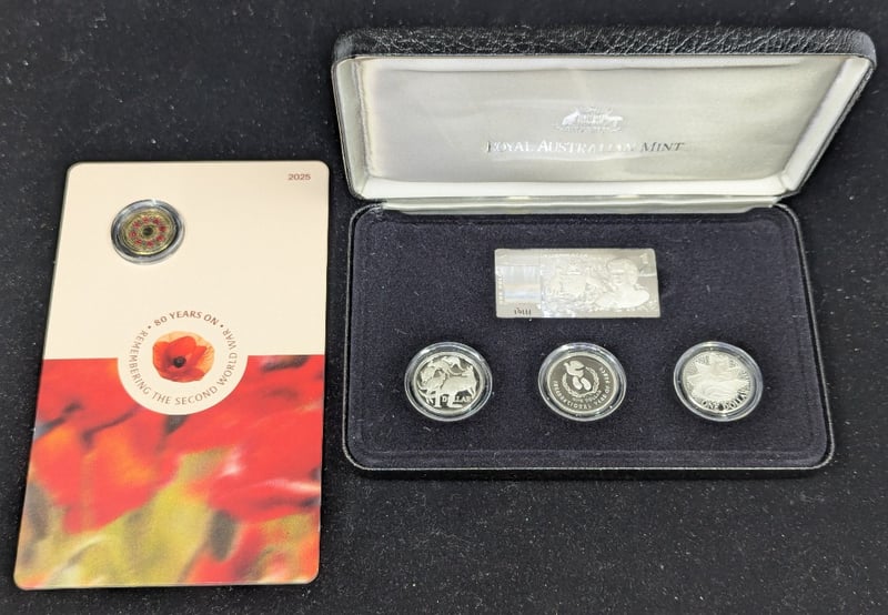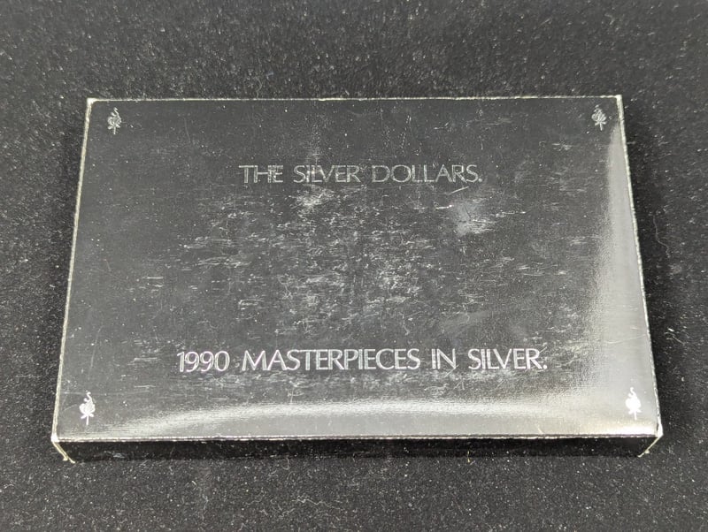 1990 MASTERPIECES IN SILVER - THE SILVER DOLLARS SET AND 2025 80 YEARS ON RED POPPY TWO DOLLAR COIN IN CARD