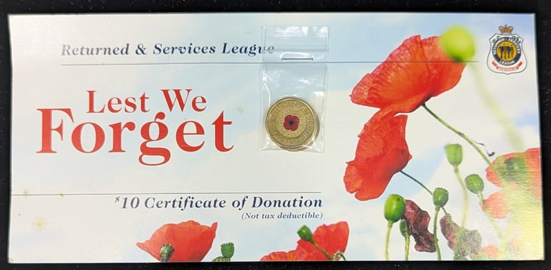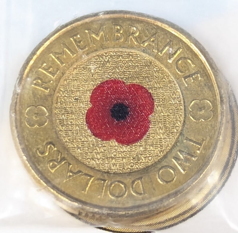 2012 LEST WE FORGET RED POPPY TWO DOLLAR COIN WITH CARD