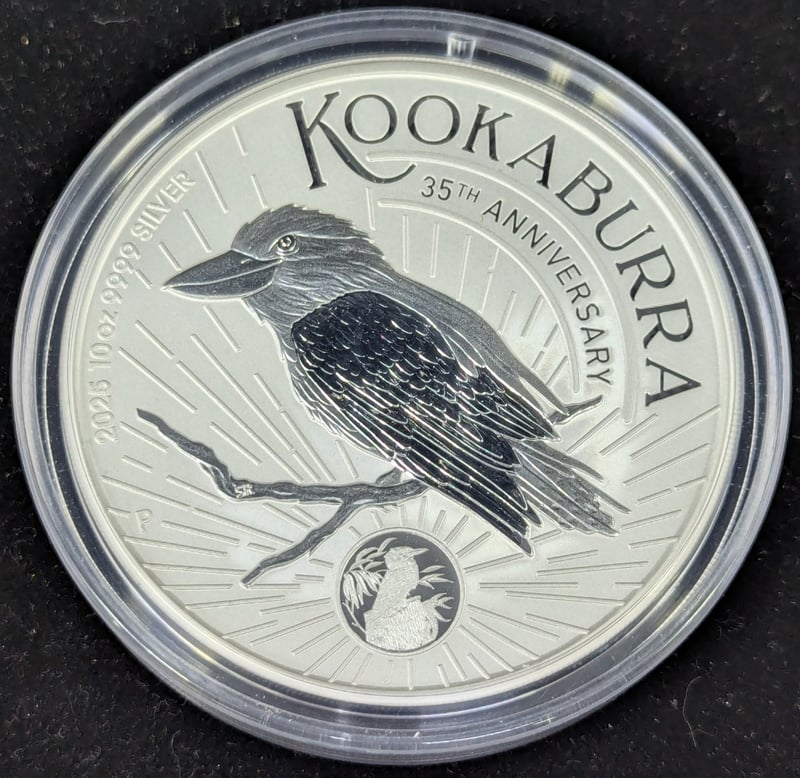 2025 AUSTRALIAN KOOKABURRA 35TH ANNIVERSARY 10OZ 9999 SILVER TEN DOLLAR COINCondition: Unc586285+35