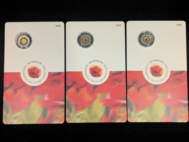 Three 2025 Red Poppy Remembrance Two Dollar Coins,