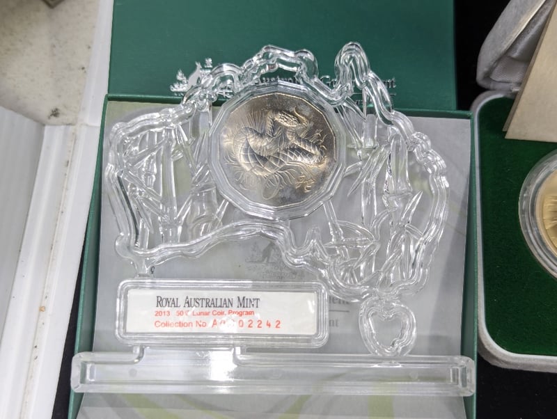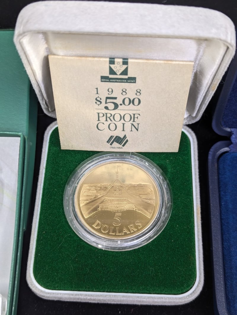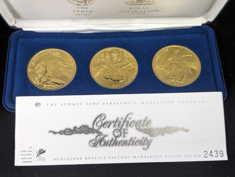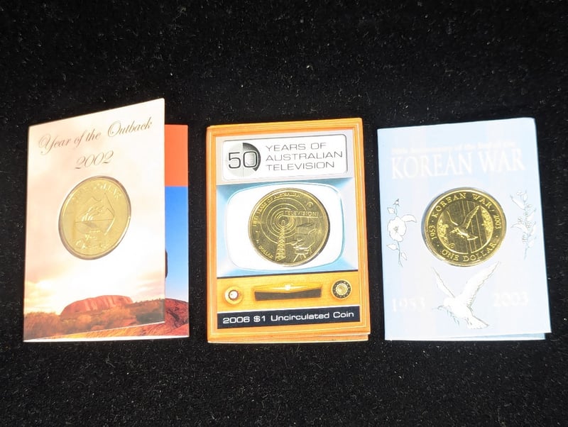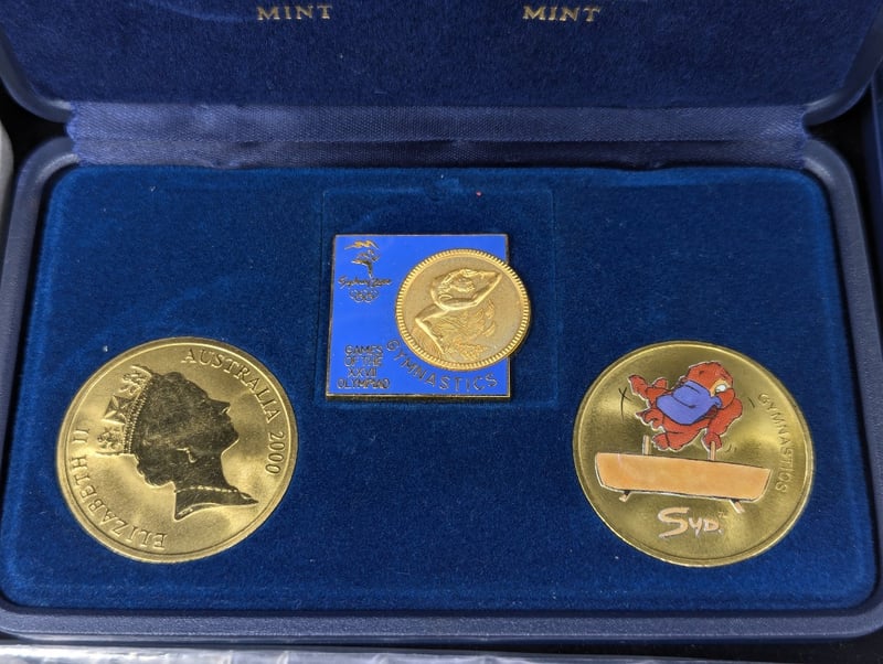COLLECTION OF AUSTRALIAN COMMEMORATIVE COINS AND MEDALLIONSIncludes Various One Dollar Coins In Cards, The Spirit Of Anzac Commemorative Fifty Cent, 1993 One Dollar Coin, 2013 Fifty Cent Lunar Coin Program Fifty Cent, 1984 Mob Of Roos One Dollar, 2020 Icc Womens T20 World Cup Two Dollar, 2016 Convict Love Tokens Three Coin Set, Sydney 2000 Paralympic Medallion Program Three Coin Set, Sydney 2000 Olympic Gymnastics Coin, Medallion And Pin Set, 1988 Five Dollar Commemorative Proof CoinCondition: Aunc586285+52
