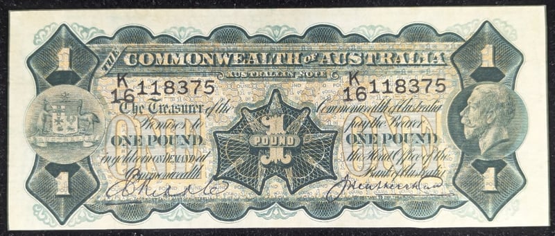 1927 COMMONWEALTH OF AUSTRALIA ONE POUND BANKNOTE SIGNED BY RIDDLE/HEATHERSHAW