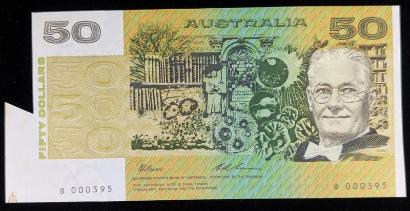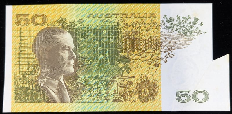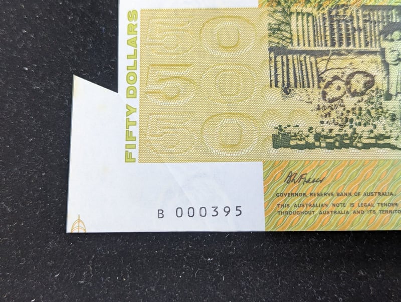 AUSTRALIAN INCOMPLETE SERIAL NUMBER FIFTY DOLLAR BANKNOTESerial Number On Folded Paper586285+65