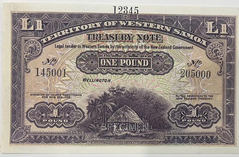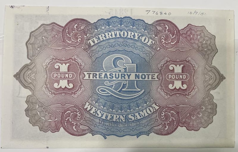 1951-TERRITORY OF WESTERN SAMOA-ONE POUND-BY AUTHORITY OF NEW ZEALAND LEGAL TENDER SPECIMEN BANKNOTES EXTREMELY RARE--NOT RELEASED FOR CIRCULATION 311156+32