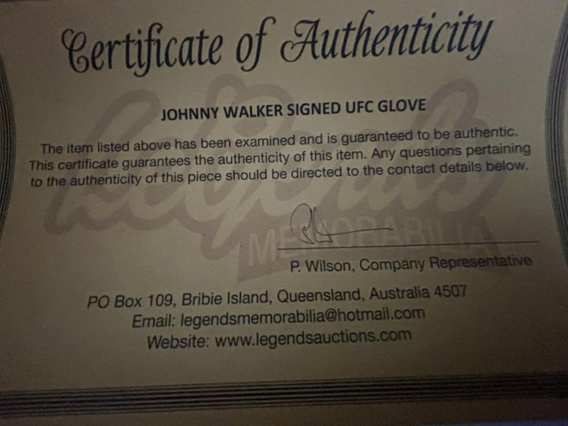 Johnny Walker Personally Signed 4 Oz Ufc Glove. The Item Is Accompanied By A Certificate Of Authenticity.
