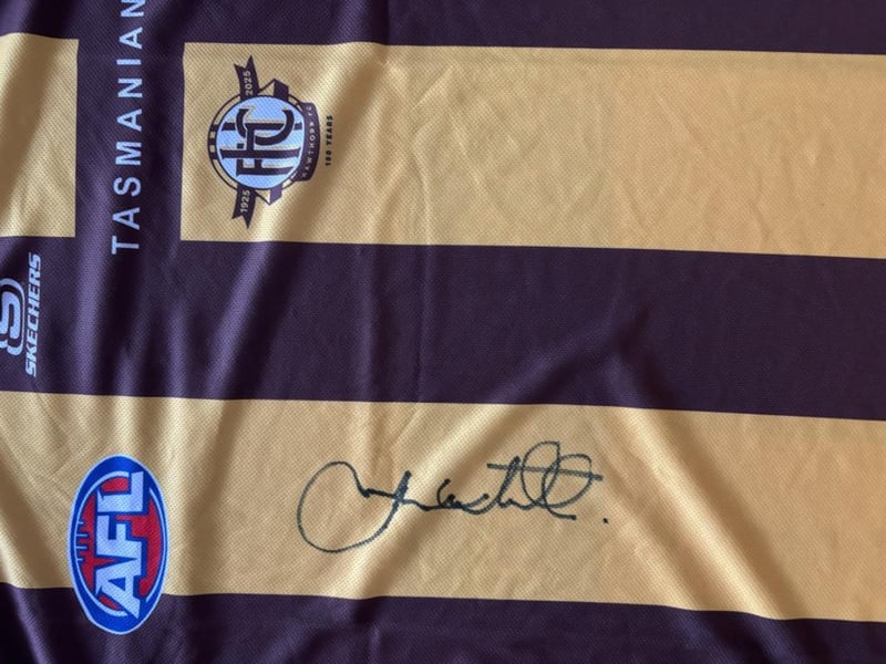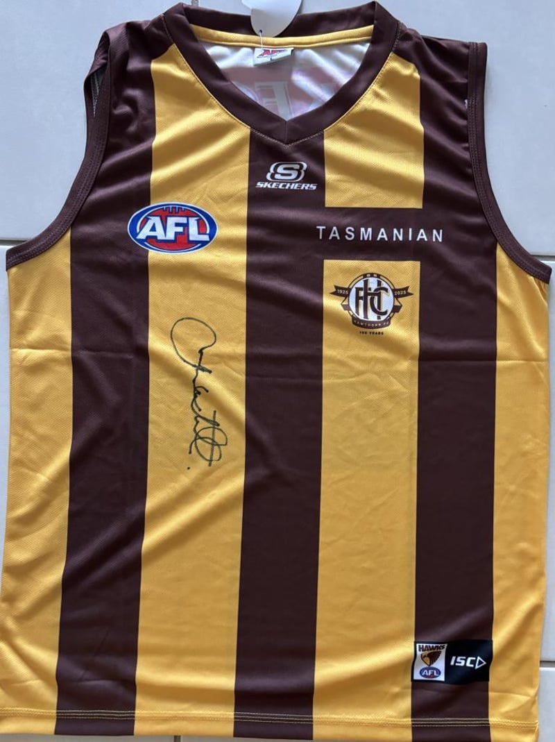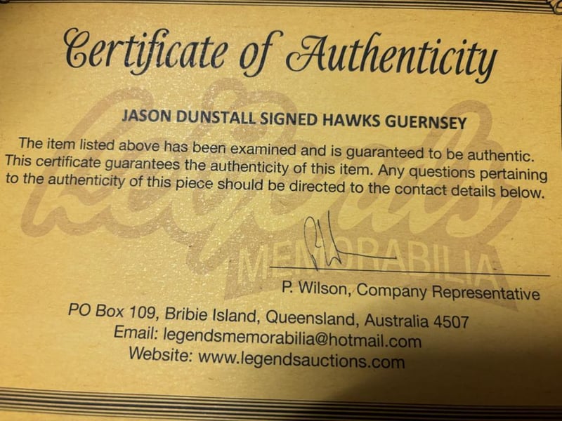 JASON DUNSTALL SIGNED HSWTHORN GUERNSEY Jason Dunstall Personally Signed Hawthorn Guernsey. The Guernsey Is Size L. The Item Is Accompanied By A Certificate Of Authenticity. Condition: Good - Refer To Images 585039+1