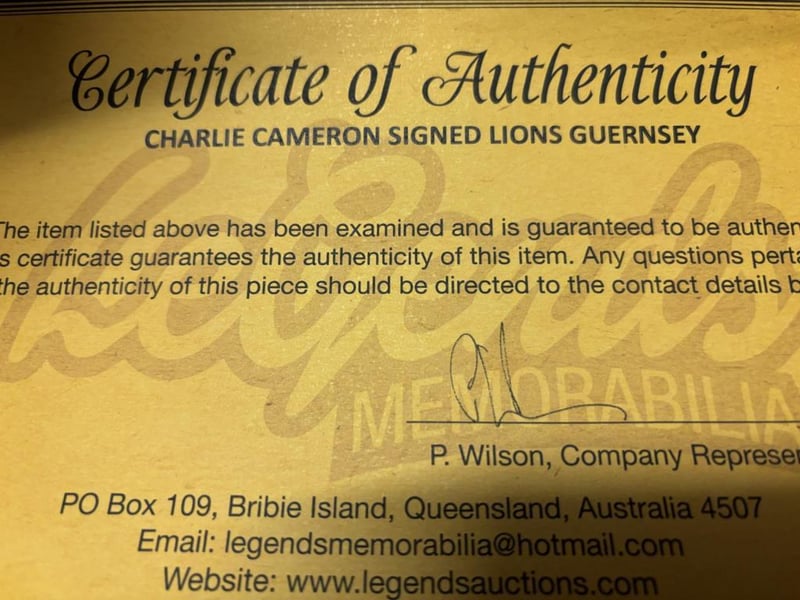 CHARLIE CAMERON SIGNED LIONS GUERNSEY
