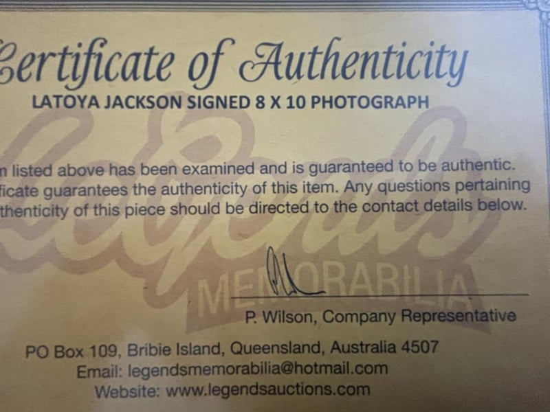 Latoya Jackson Personally Signed 8 X 10 Photo. The Item Is Accompanied By A Certificate Of Authenticity.