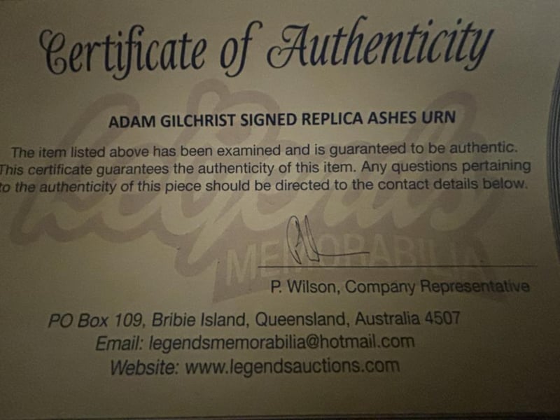 Adam Gilchrist Personally Signed Replica Ashes Urnthe Item Is Accompanied By A Certificate Of Authenticity.