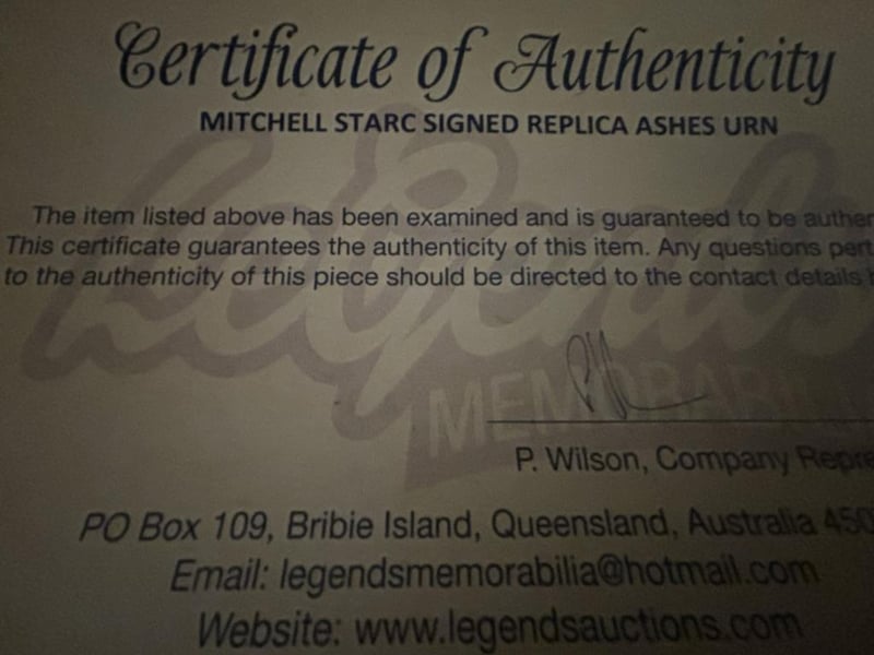 MITCHELL STARC SIGNED ASHES URNMitchell Starc Personally Signed Replica Ashes Urnthe Item Is Accompanied By A Certificate Of Authenticity.Condition: Good - Refer To Images585039+46