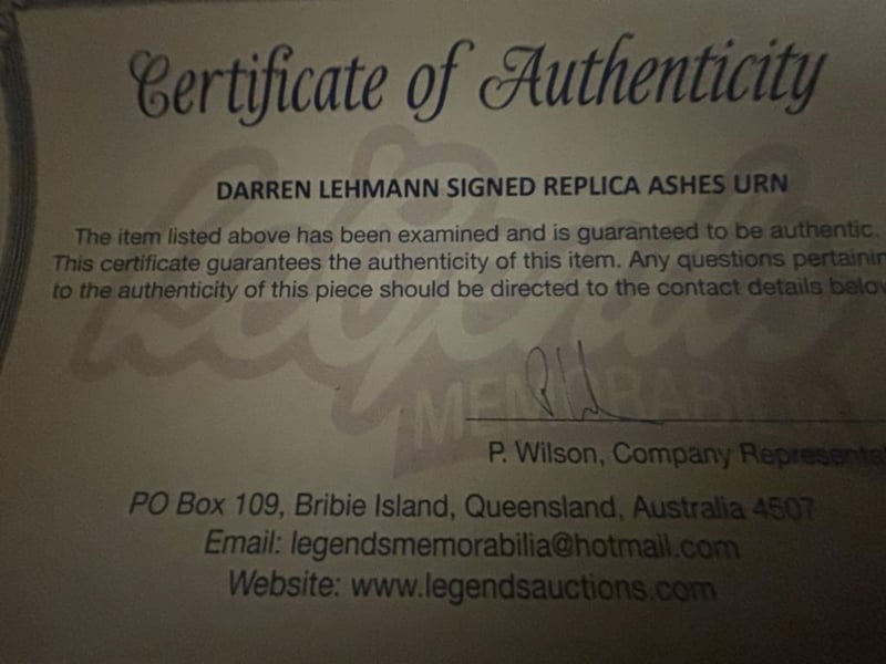 Darren Lehmann Personally Signed Replica Ashes Urnthe Item Is Accompanied By A Certificate Of Authenticity.