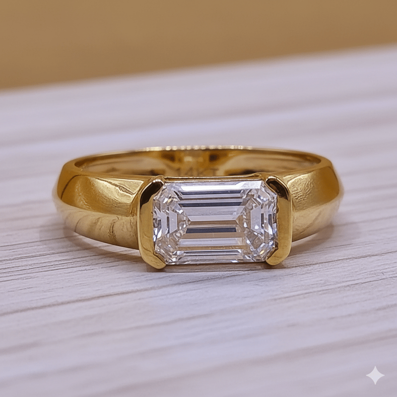 14K YELLOW GOLD EMERALD CUT LAB GROWN DIAMOND RING 1.51CT D-E VVS+