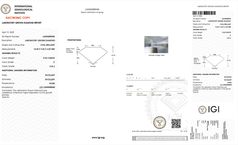 Please note that while all lab grown diamonds listed include certification, the report number or identification may vary upon arrival. This is due to standard manufacturing and batching processes. However, the diamond’s specifications — including carat, color, cut, and clarity — will match or may even exceed those advertised.