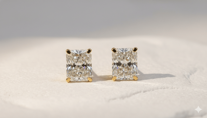 14K YELLOW GOLD LAB GROWN DIAMOND RADIANT CUT STUD EARRINGS 1.00CT D - E VVS+
