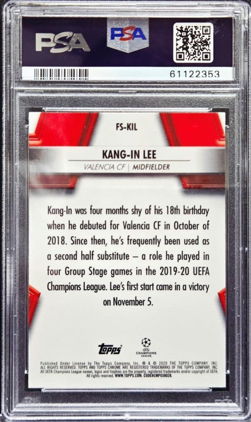 KANG-IN LEE ROOKIE REFRACTOR PSA 10 ⚽ 2019–20 TOPPS CHROME UCL KANG-IN LEE FUTURE STARS ROOKIE REFRACTOR – PSA 10Presented Is The 2019–20 Topps Chrome Uefa Champions League Kang-In Lee Future Stars Rookie Refractor, Graded Psa 10. This Card Forms Part Of Lee’S Officially Recognised Early-Career Releases And Reflects His Emergence As One Of The Most Technically Proficient Young Midfielders To Feature In European Competition During This Period. The Future Stars Subset Was Designed To Highlight Developing Players With Strong Long-Term Potential, And This Refractor Issue Captures Lee At A Formative Stage As He Established His Profile In Top-Tier Football.Size: 0Condition: Good - Refer To Images584998+31
