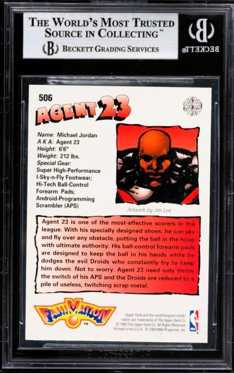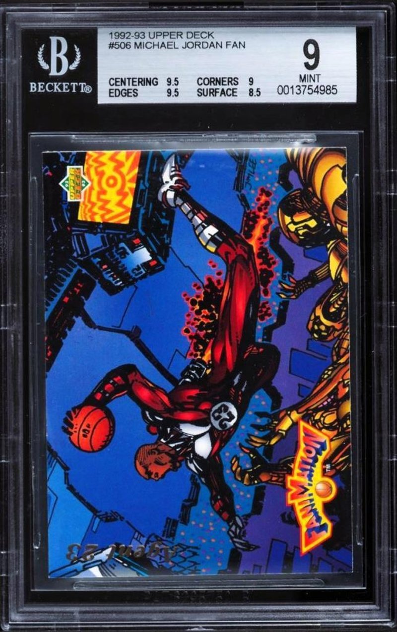 1992 UPPER DECK FANIMATION MICHAEL JORDAN #506 – BGS 9 MINT – ICONIC ILLUSTRATED TRIBUTE TO THE GOAT - NBA BASKETBALL Presented Here Is The 1992 Upper Deck Fanimation Michael Jordan #506, Graded Bgs 9 (Mint) – One Of The Most Distinctive And Artistically Significant Cards Of The Early 1990S. This Issue Forms Part Of Upper Deck’S Short-Lived But Highly Celebrated Fanimation Subset, Which Creatively Reimagined Basketball’S Brightest Stars Through Vibrant Comic-Style Artwork. Featuring A Dynamic Illustrated Depiction Of Jordan Soaring Through The Air, This Card Captures Both His Athleticism And His Larger-Than-Life Presence At The Height Of His Dominance. Released During The 1991–92 Nba Season, The Fanimation Inserts Were Innovative For Their Time, Merging Pop Art With Professional Sport – A Fitting Medium For An Athlete Who Transcended Both. Size: 0 Condition: Good - Refer To Images 584998+1