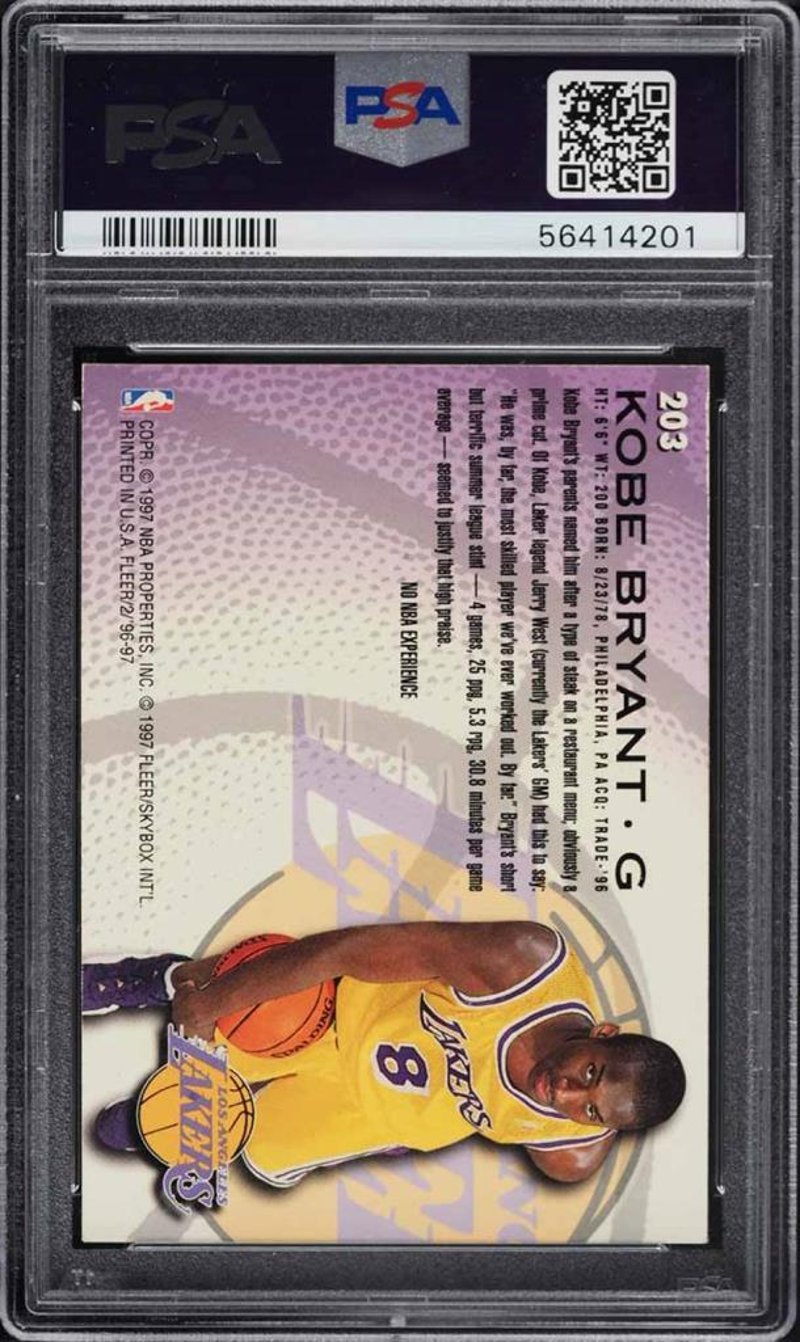 1996 FLEER BASKETBALL KOBE BRYANT ROOKIE CARD #203 – PSA 6 EX-MTOffered Here Is The 1996 Fleer Kobe Bryant Rookie Card #203, Graded Psa 6 (Excellent–Mint). This Card Hails From One Of The Most Important Basketball Sets Of The 1990S, Released During Kobe Bryant’S Debut Nba Season. As Part Of Fleer’S Flagship 1996–97 Issue, It Represents One Of The Earliest Officially Licensed Rookie Cards Of The Late Hall Of Famer And Global Icon. The Card Captures A Young Kobe In His Los Angeles Lakers Uniform, Reflecting The Beginning Of An Illustrious Career That Would Span Two Decades And Include Five Nba Championships, Two Finals Mvps, And A Place Among The Game’S All-Time Greats.Size: 0Condition: Good - Refer To Images584998+21