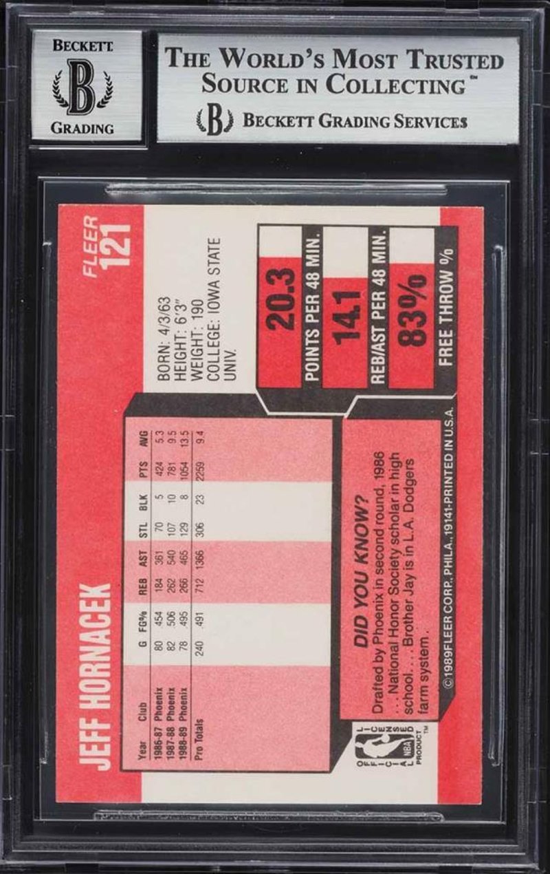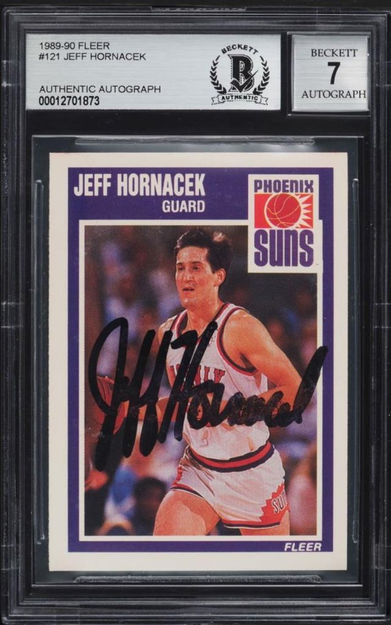 1989 FLEER BASKETBALL JEFF HORNACEK AUTO #121 – BGS AUTHENTICATEDPresented Is A 1989 Fleer Jeff Hornacek #121 Trading Card, Personally Signed By The Player And Authenticated By Bgs (Beckett Grading Services). This Early Career Issue Captures Hornacek In Action During His Time With The Phoenix Suns, And The Addition Of His Bold On-Card Autograph Transforms It Into A Unique And Desirable Piece. As One Of The Few Signed Examples Of His Recognised Rookie-Era Fleer Card, It Offers Collectors Both Nostalgia And Signature Authenticity In One. Hornacek Enjoyed A Distinguished Nba Career, Particularly Noted For His Contributions With The Jazz During Their Championship-Contending Seasons Of The Late 1990S, Making This Card A Fitting Tribute To His Legacy.Size: 0Condition: Good - Refer To Images584998+26