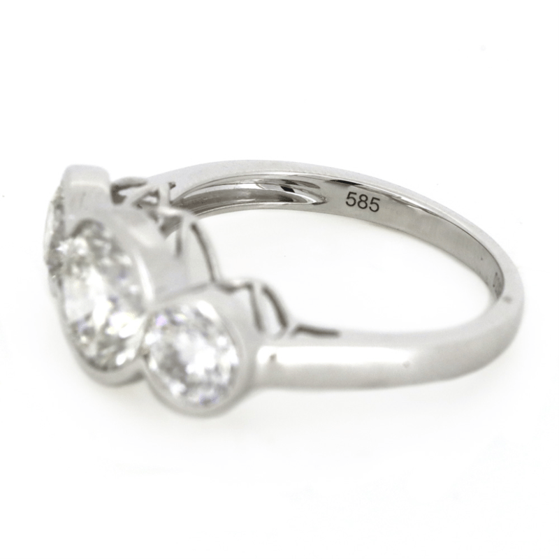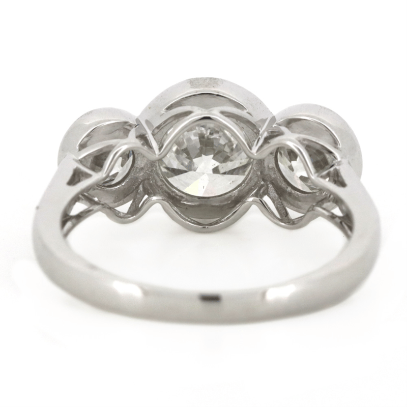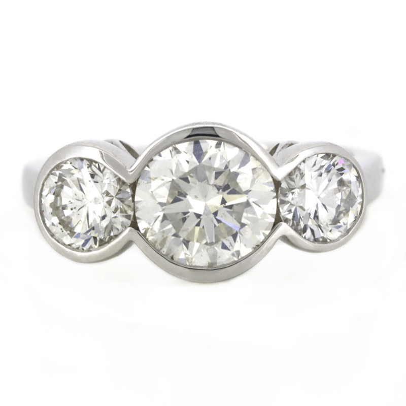 The Centre Features, One Round Brilliant Cut, Diamond (2.03Ct, G-H Colour, Si2 Clarity), Half Bezel Set. Flanking Either Side Of The Centre Are, 2 Round Brilliant Cut, Diamonds (1.40Ct Tdw, G-I Colour, Sii-2 Clarity), Half Bezel Set. Ring Size N.
