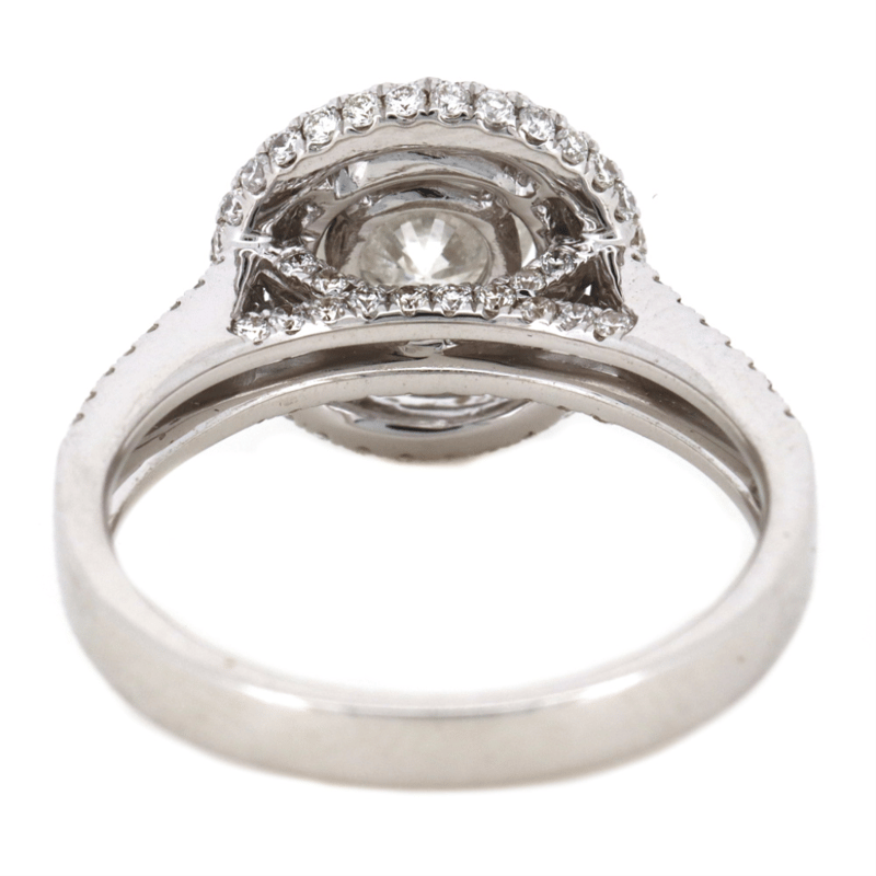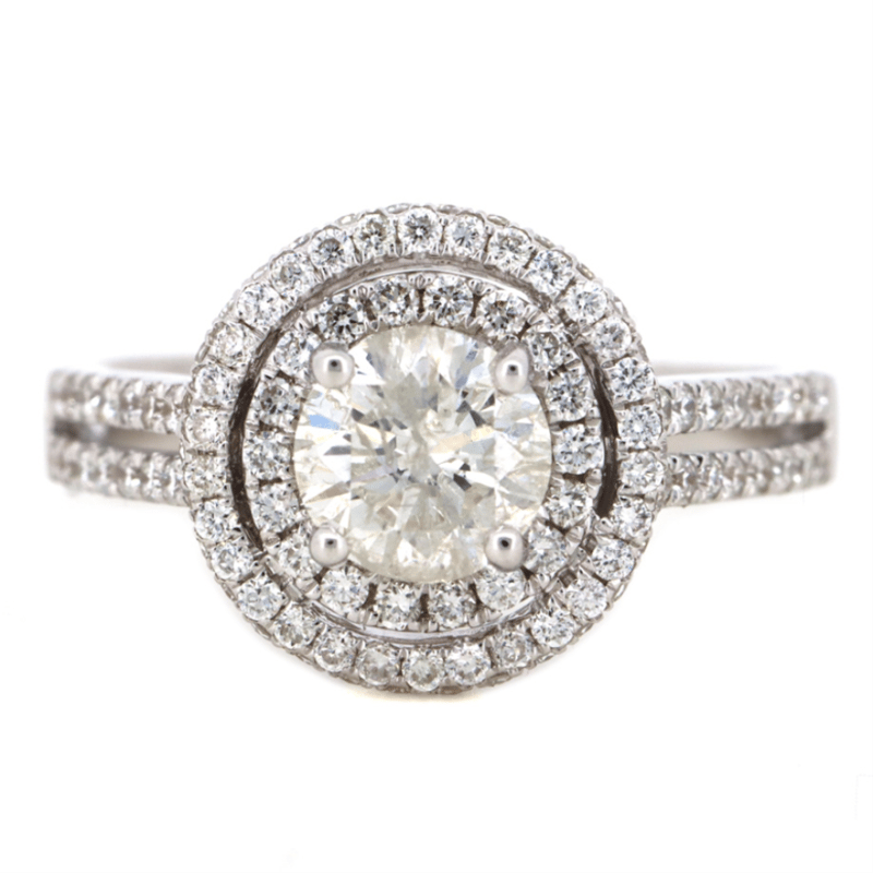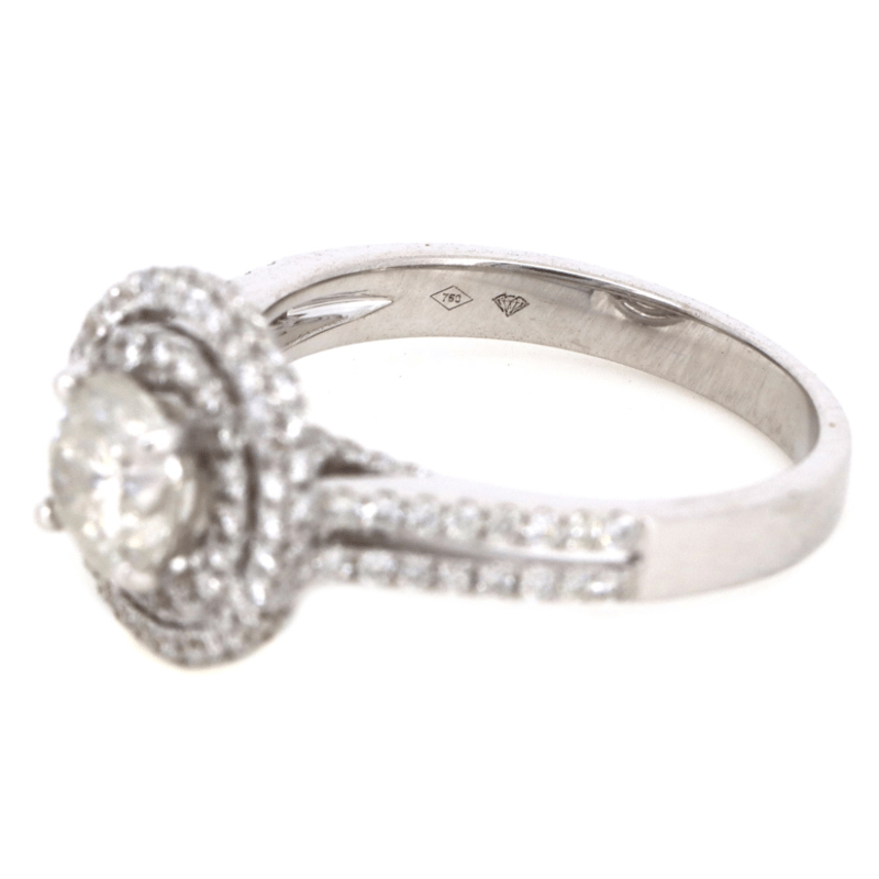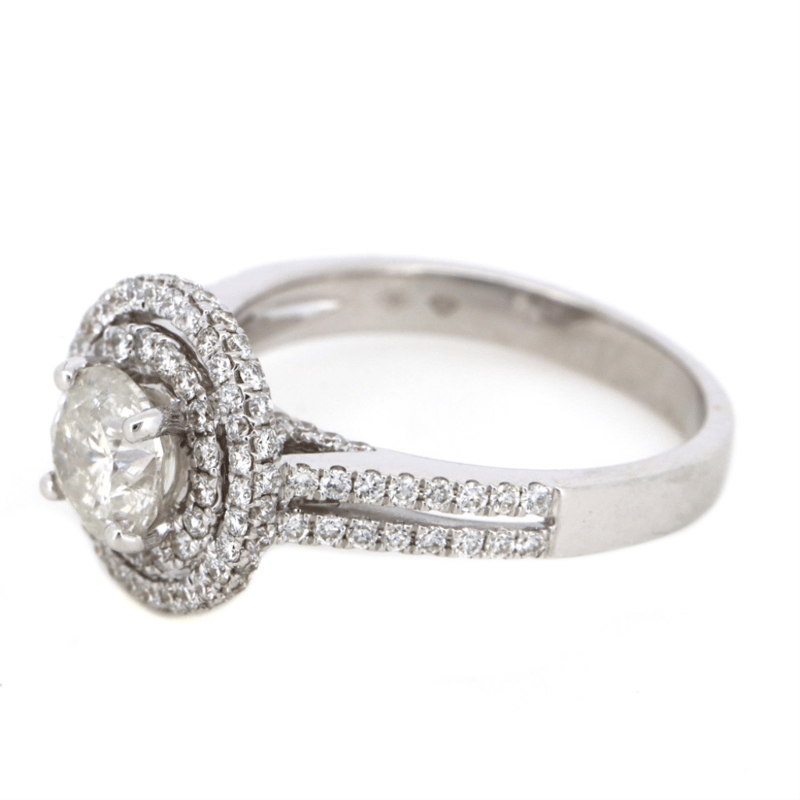 18K WHITE GOLD AND DIAMOND, DOUBLE HALO RING.