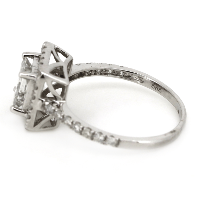 14K WHITE GOLD AND DIAMOND, HALO RING.