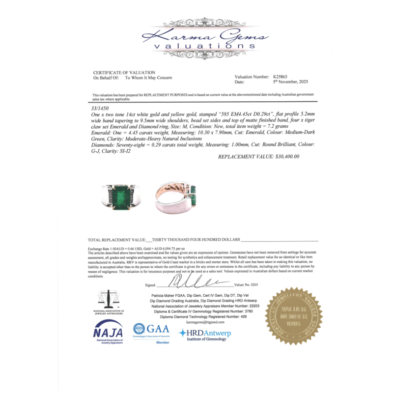 This Insurance Valuation has been provided by a registered Jewellery Valuer and is intended for insurance purposes only. The valuation amount has no bearing on the auction value of the item. Any questions regarding the valuation should be directed to the issuing Valuer (refer to contact details on the certificate) as Lloyds have no association or relationship with the Valuer or the valuation amount contained within the valuation.
