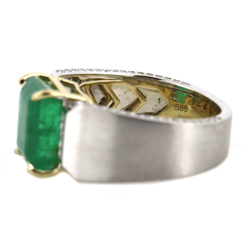 14K YELLOW/WHITE GOLD, EMERALD AND DIAMOND, DRESS RING.