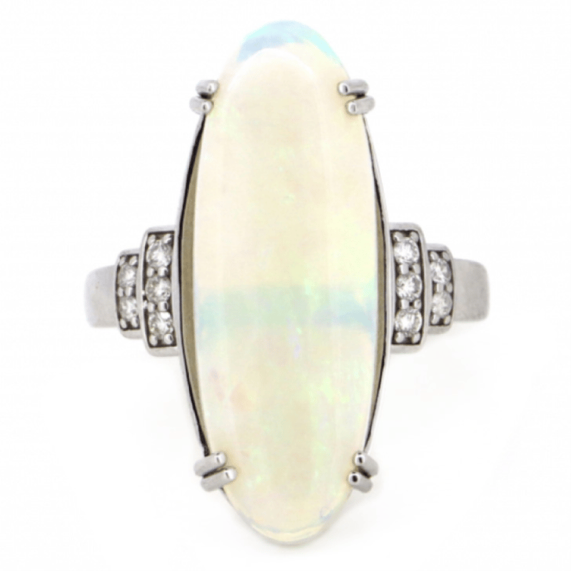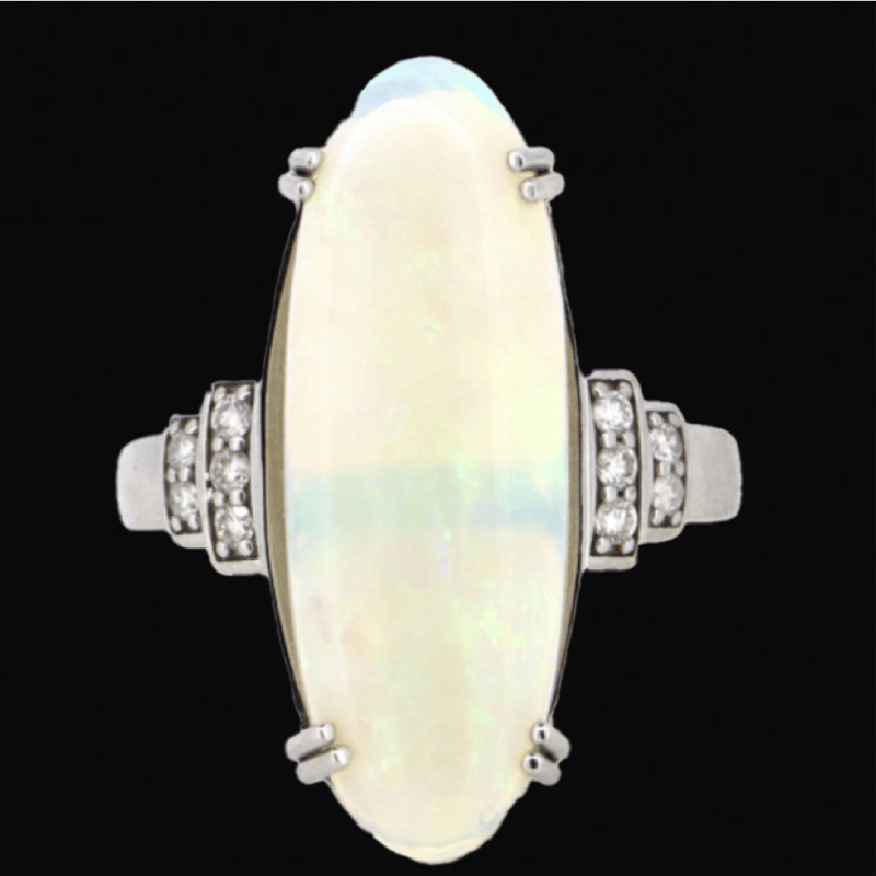 14K WHITE GOLD, 5.86CT ANDAMOOKA OPAL AND DIAMOND, STATEMENT RING.