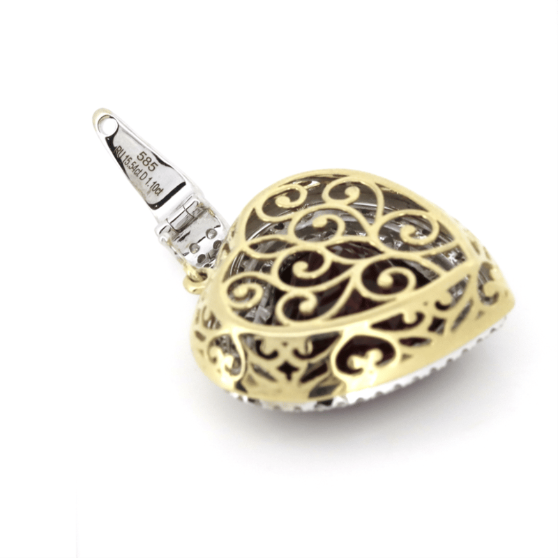 14K YELLOW/WHITE GOLD, 15.54CT RUBELLITE AND DIAMOND, HEART PENDANT.