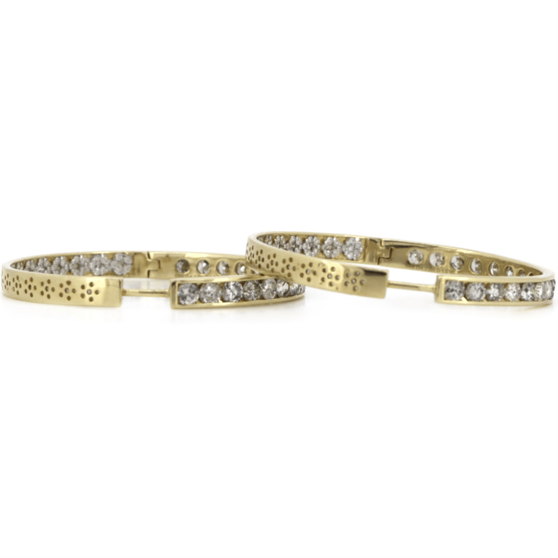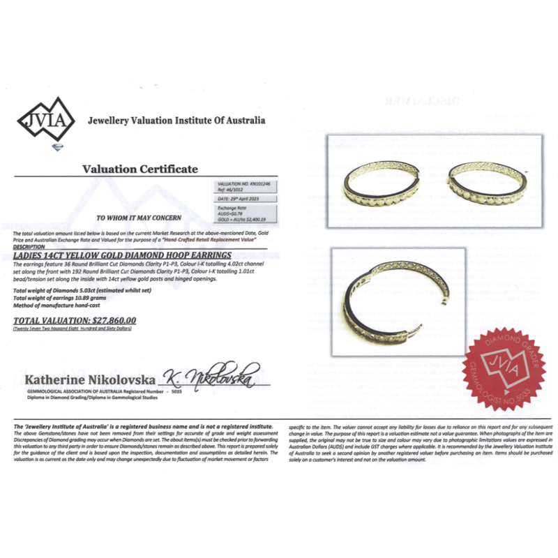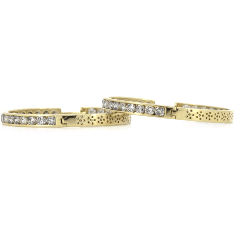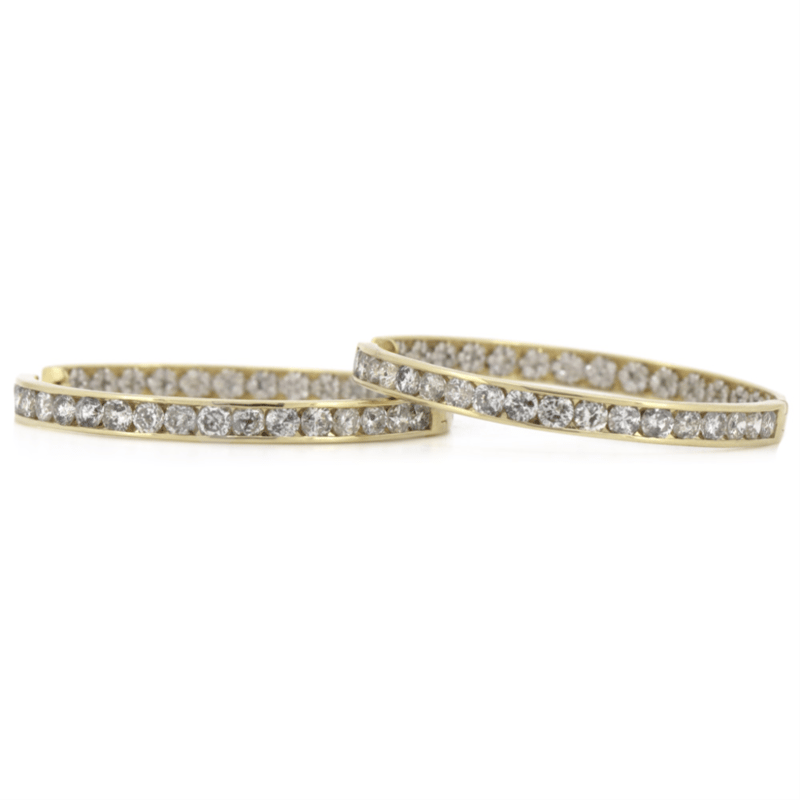 14K YELLOW GOLD, 5.03CT TDW DIAMOND, HOOP EARRINGS.