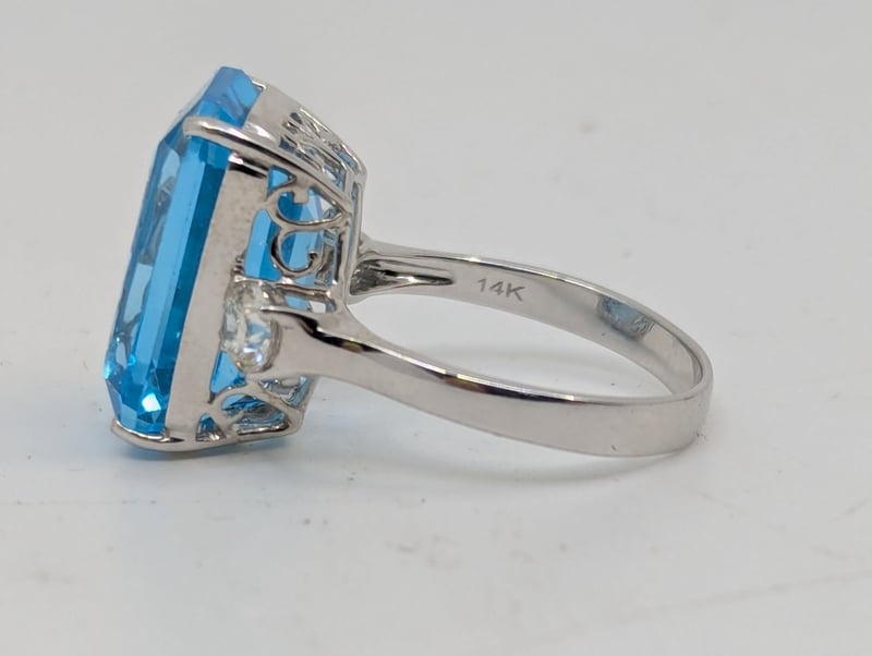 14CT WHITE GOLD DIAMOND AND TOPAZ RING