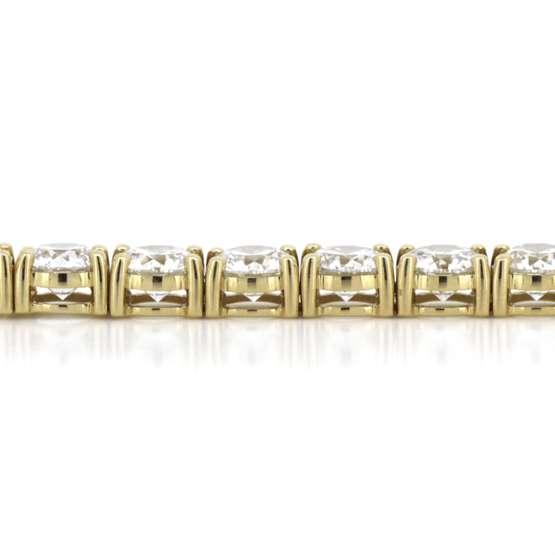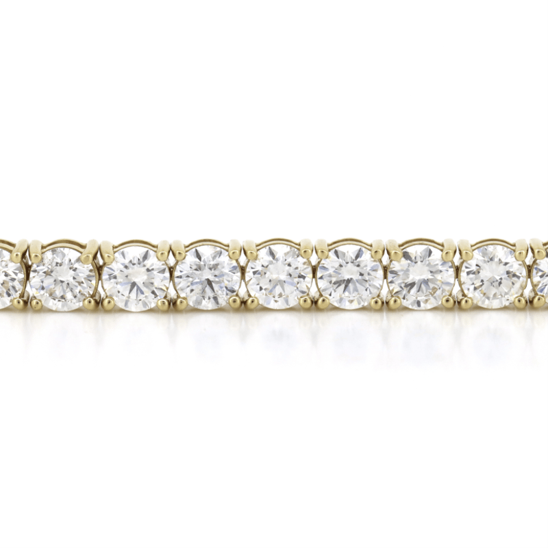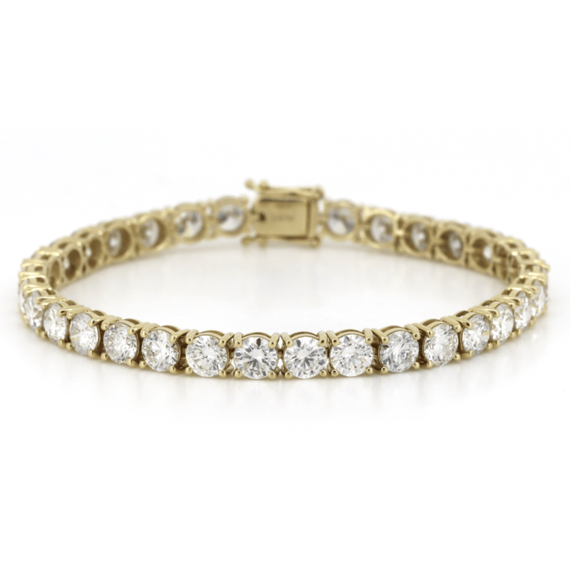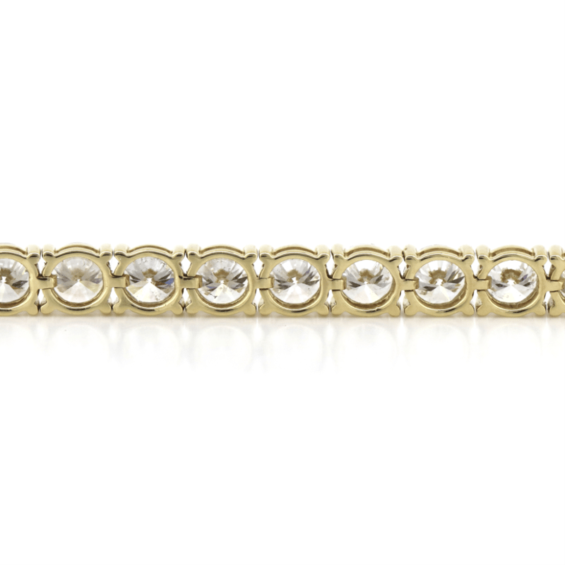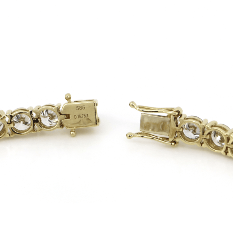 14K Yellow Gold, 16.76Ct Tdw Diamond, Tennis Bracelet. The Design Features, 33 Round Brilliant Cut, Diamonds (16.76Ct Tdw, H-K Colour, Si-I1 Clarity), 4 Claw Set In A Single Row. The Bracelet Has A Box Lock With 2 'Figure Eight' Safety Catches. Bracelet Length Is 18Cm.