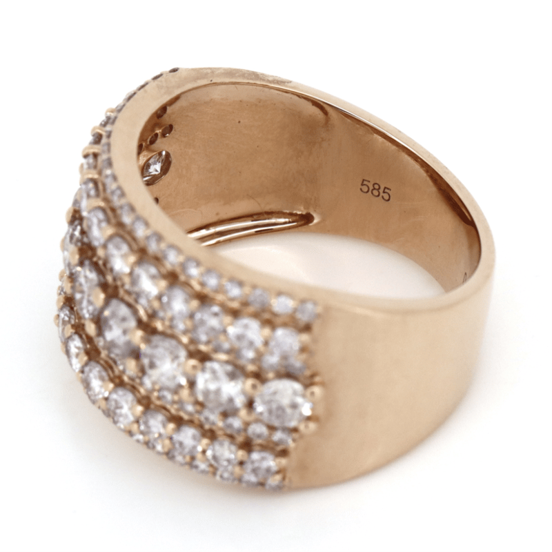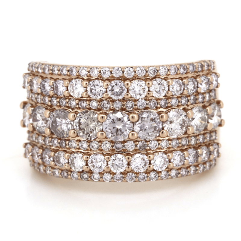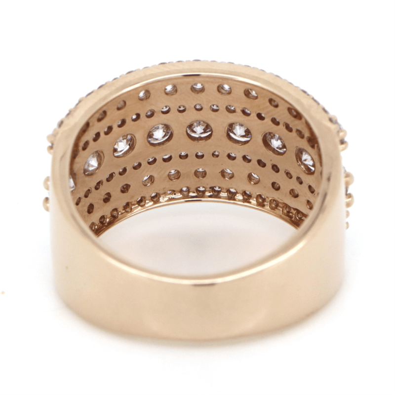 14K Rose Gold, Fancy Pink Diamond, Band Ring. The Design Features, Round Brilliant Cut, Fancy Light Pink/Champagne, Diamonds (1.06Ct Tdw, Si1-2 Clarity), 4 Claw Set. Encompassing The Design Are, Round Brilliant Cut, Fancy Light Pink, Diamonds (1.17Ct Tdw, Si Clarity), Bead Set. Ring Size M 1/2.