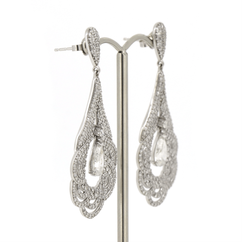 14K White Gold And Diamond, Earrings. The Design Features, 2 Pear Brilliant Cut, Diamonds (2.01Ct Tdw, H Colour, I1-I2 Clarity), 3 Claw Set With Mill-Edge Detailing. Accompanying The Centres Are, 424 Round Brilliant Cut, Diamonds (2.95Ct Tdw, H-I Colour, Si-I2 Clarity) Micro-Bead Set. The Earrings Feature Butterfly Clasps.