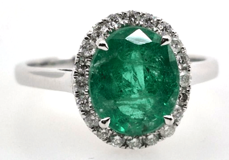 14K WHITE GOLD EMERALD AND DIAMOND RING