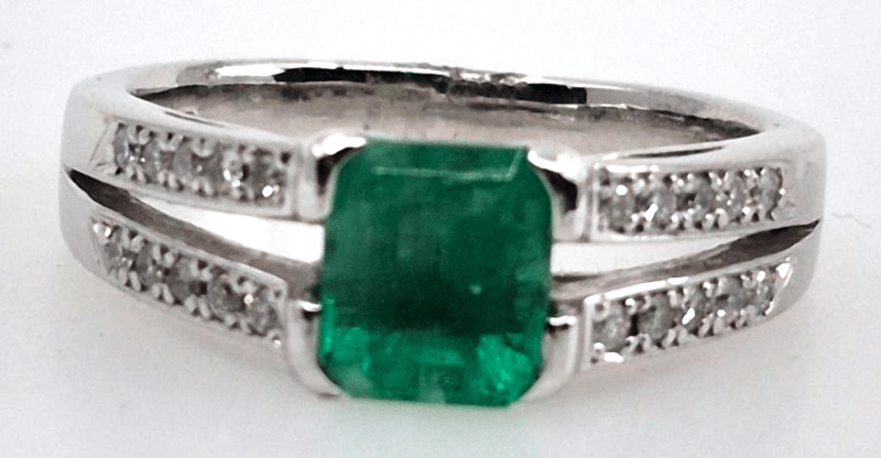 Featuring 1 Emerald Cut Colombian Emerald, 4 Claw Set Weighing 1.20Cts And 20 Pave Set Diamonds 20Pts
