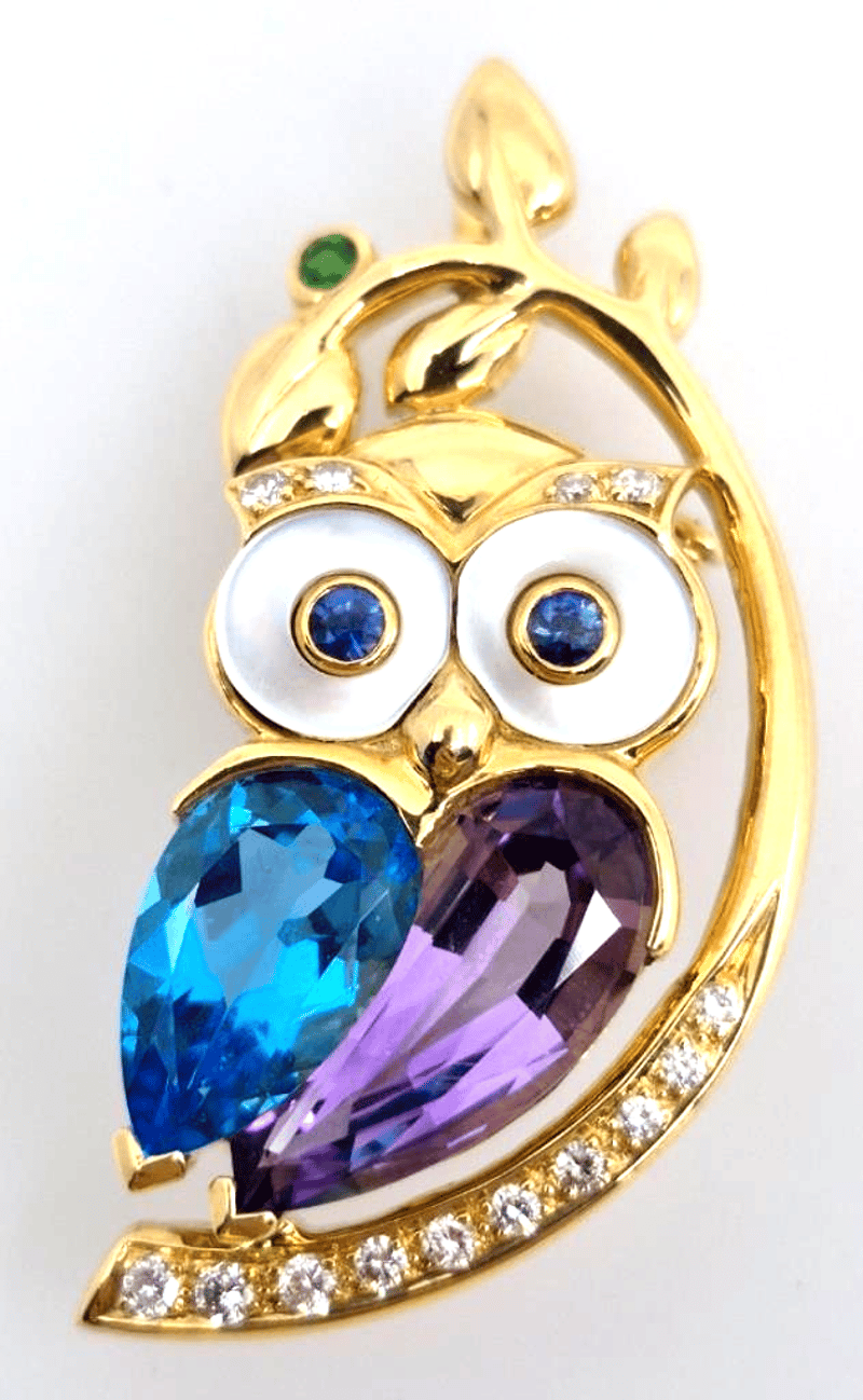 18K YELLOW GOLD OWL BROOCH