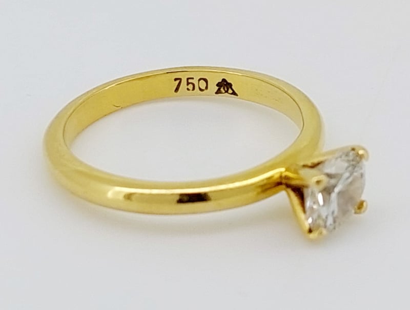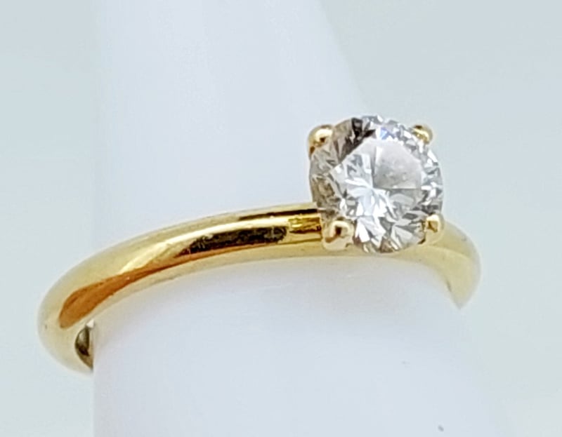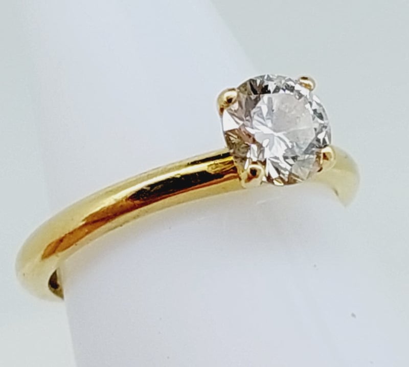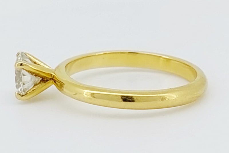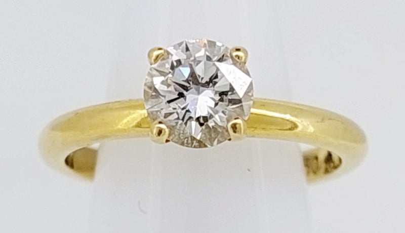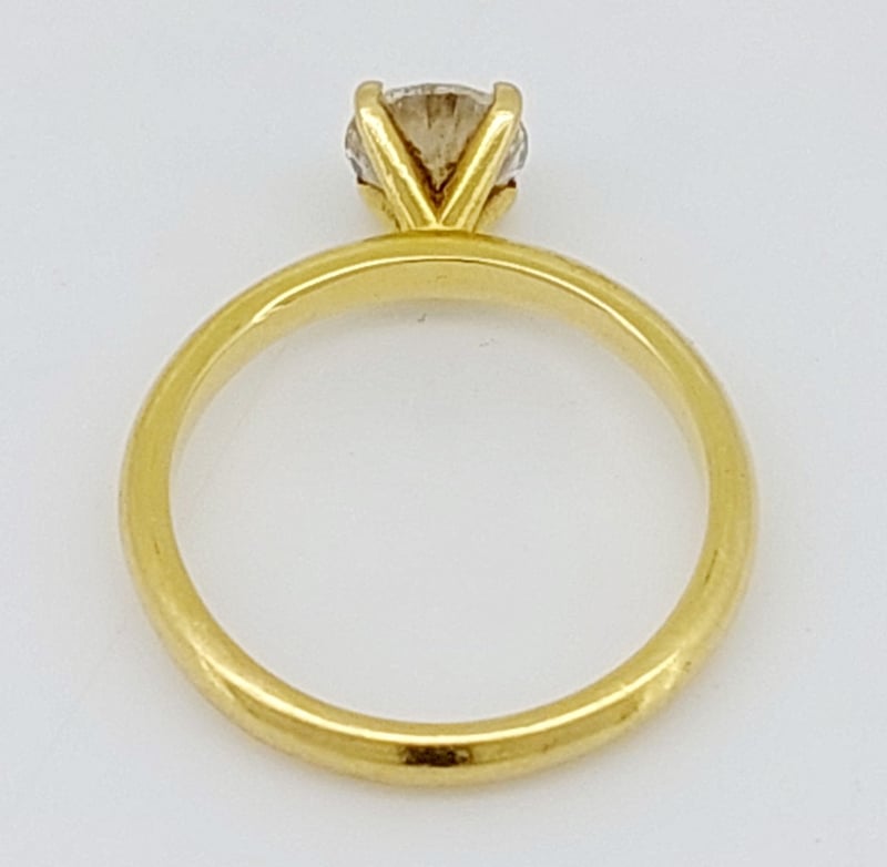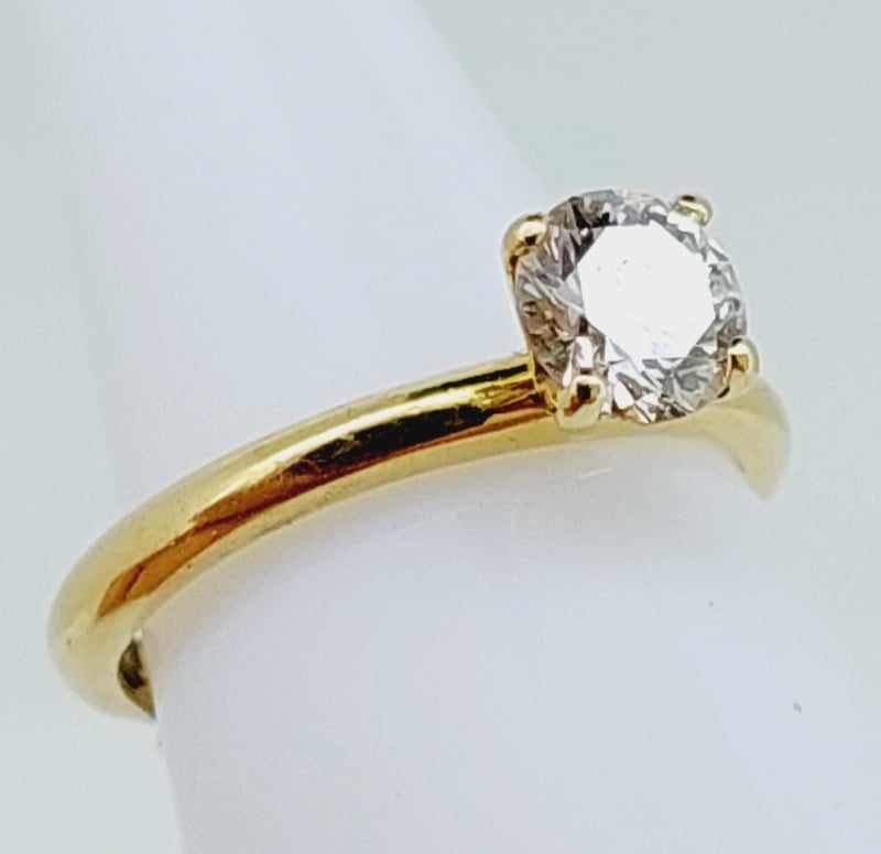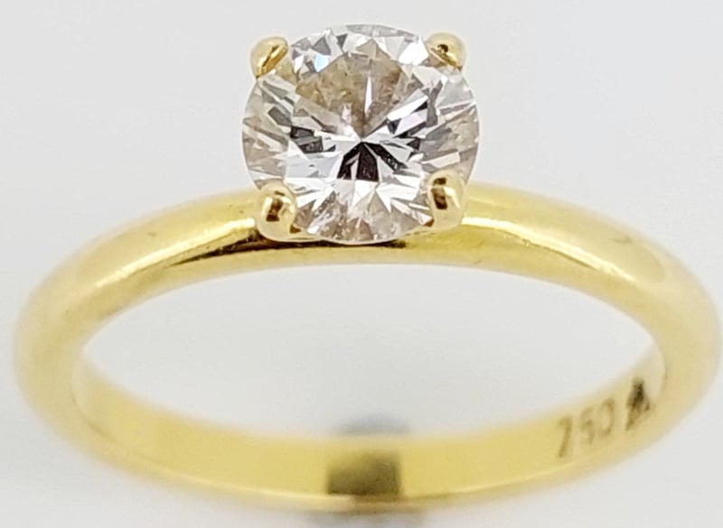 18Ct Yellow Gold Ring Featuring 1 X 0.70Ct Round Brilliant Cut 4 Claw Set Diamond Measuring 5.72 X 5.75 X 3.50Mm. Colour: D, Clarity: Vs2, Cut Grade: Excellent, Polish: Excellent, Symmetry: Excellent, Fluorescence: None, Clarity Characteristics: Feather. Ring Size J.