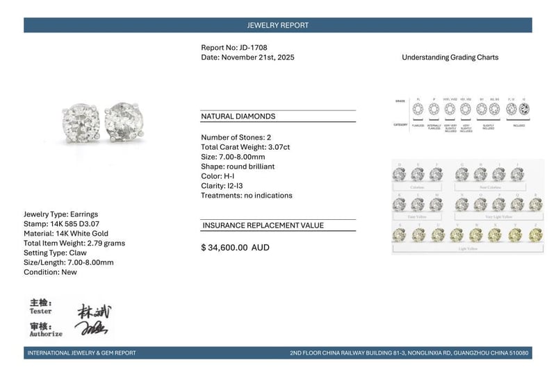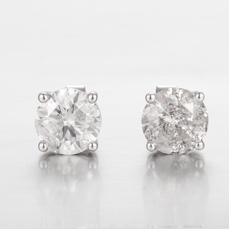 14Ct White Gold Diamond Stud Earrings Featuring, 2 Round Brilliant Cut Diamonds (3.07Ct Tdw, H-I Colour, I2-I3 Clarity), Claw Set.