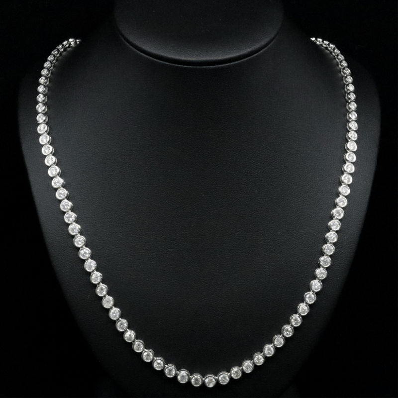 The Central Design Features, 103 Round Brilliant Cut, Off-White, Diamonds (16.27Ct Tdw, I-K Colour, Si1-P2 Clarity), Bezel Set. The Necklace Has A Box Lock Clasp, With One Safety Latch. Necklace Length Is 50Cm.
