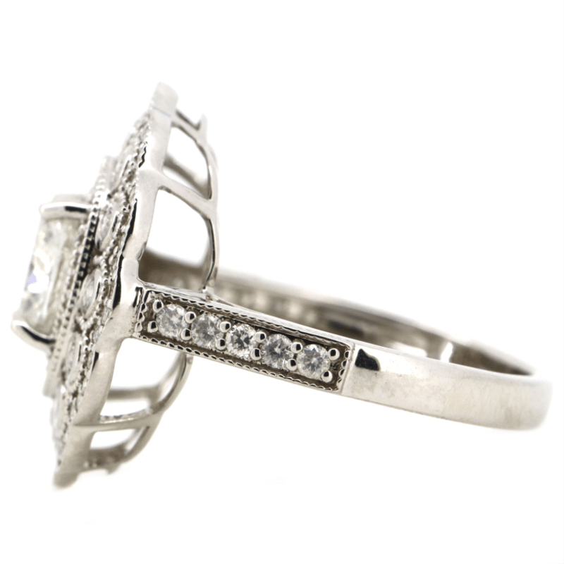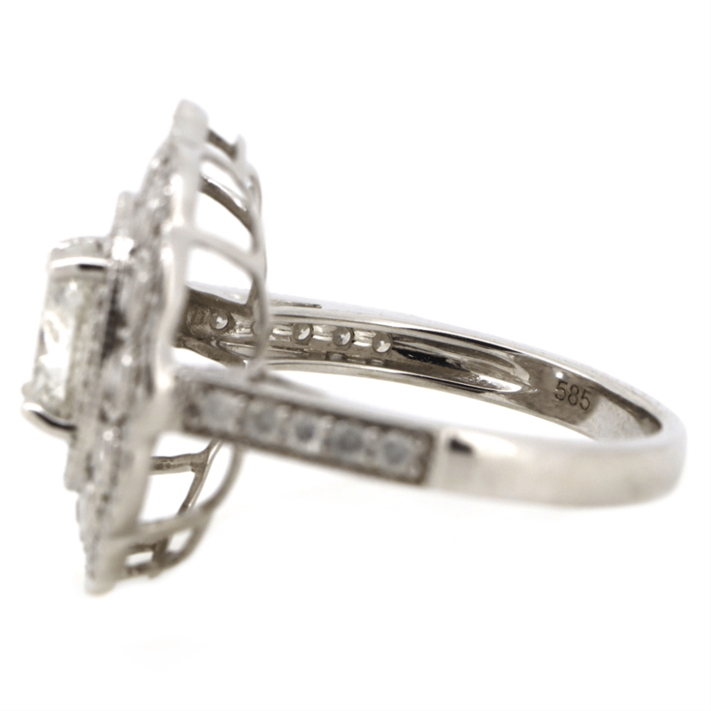 14K WHITE GOLD AND DIAMOND, CLUSTER RING.
