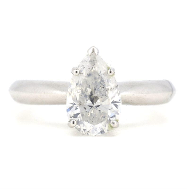 The Centre Features, One Pear Cut, Diamond (1.51Ct, G-Colour, I1-Clarity), Claw Set. Ring Size L