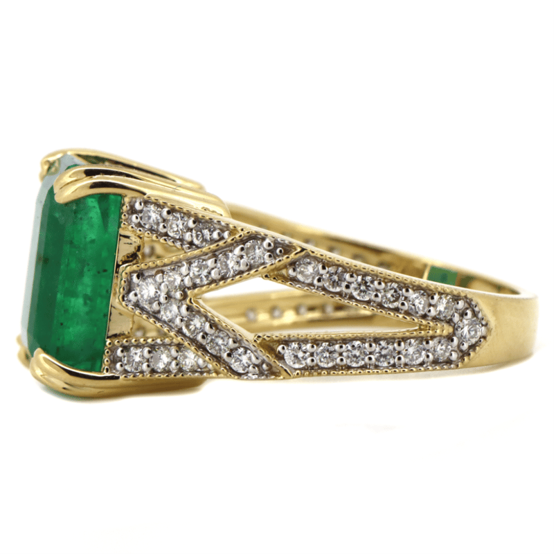 The Centre Features, One Emerald Cut, Emerald (4.65Ct,Moderate Natural Inclusions), Double 4 Claw Set. Embellishing The Design Are, 56 Round Brilliant Cut, Diamonds (0.58Ct Tdw, G-I Colour, Si Clarity), Micro-Bead Set In White Gold. Ring Size M 1/2.