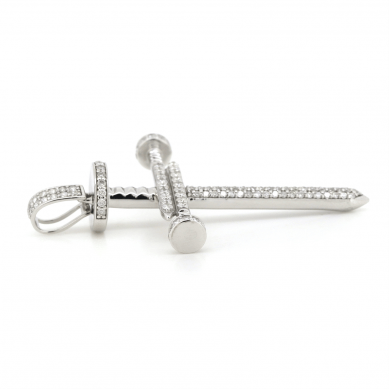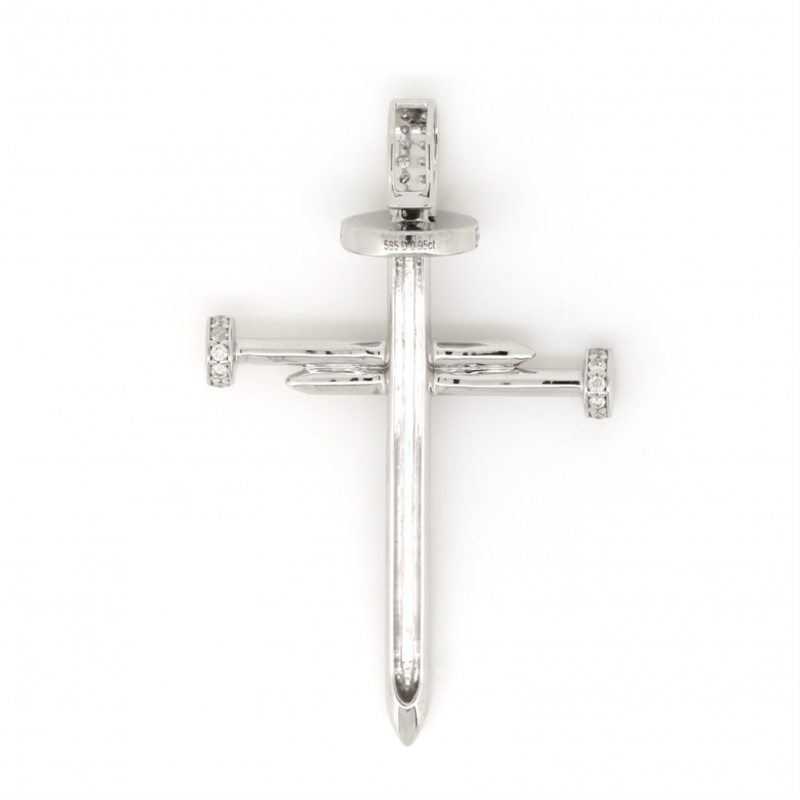 14K WHITE GOLD, 0.95CT TDW DIAMOND, CRUCIFIX PENDANT.