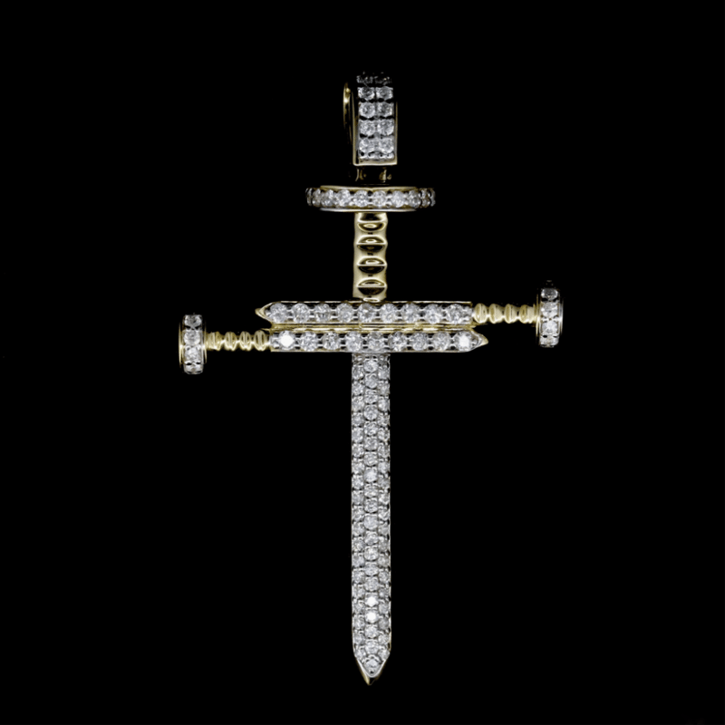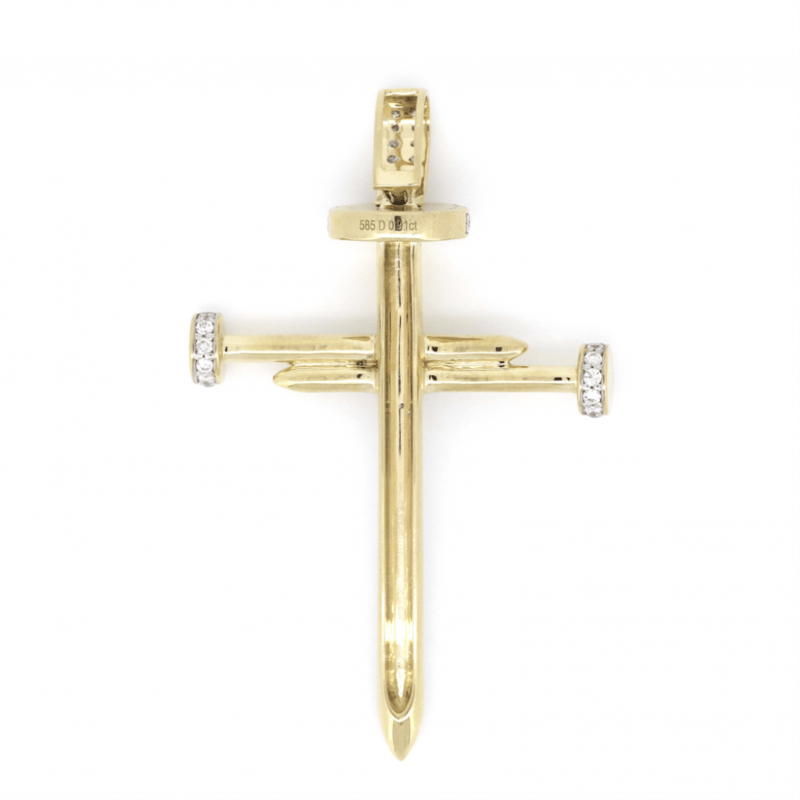 14K YELLOW GOLD, 0.91CT TDW DIAMOND, CRUCIFIX PENDANT.